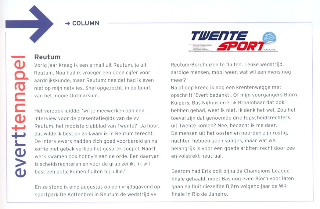 Vanaf nu wekelijks op de website van VV Reutum.
